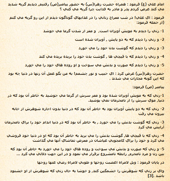 *زنی چون زهرا.سلام الله علیها. سفارش میکند: علی جان تابوتی بساز برایم. تابوتی که حجم بدنم مشخص نشود. زهرا.سلام الله علیها. شرم دارد از دیده شدن حجم بدنش حتی پس از مرگ، آنگاه دختران جامعه ی امروز من در پی آنند که کدام مانتو را انتخاب کنند که (حجم که چه عرض کنم) تمام برآمدگی و فرورفتگی های بدنشان را بیشتر به نمایش بگذارد.